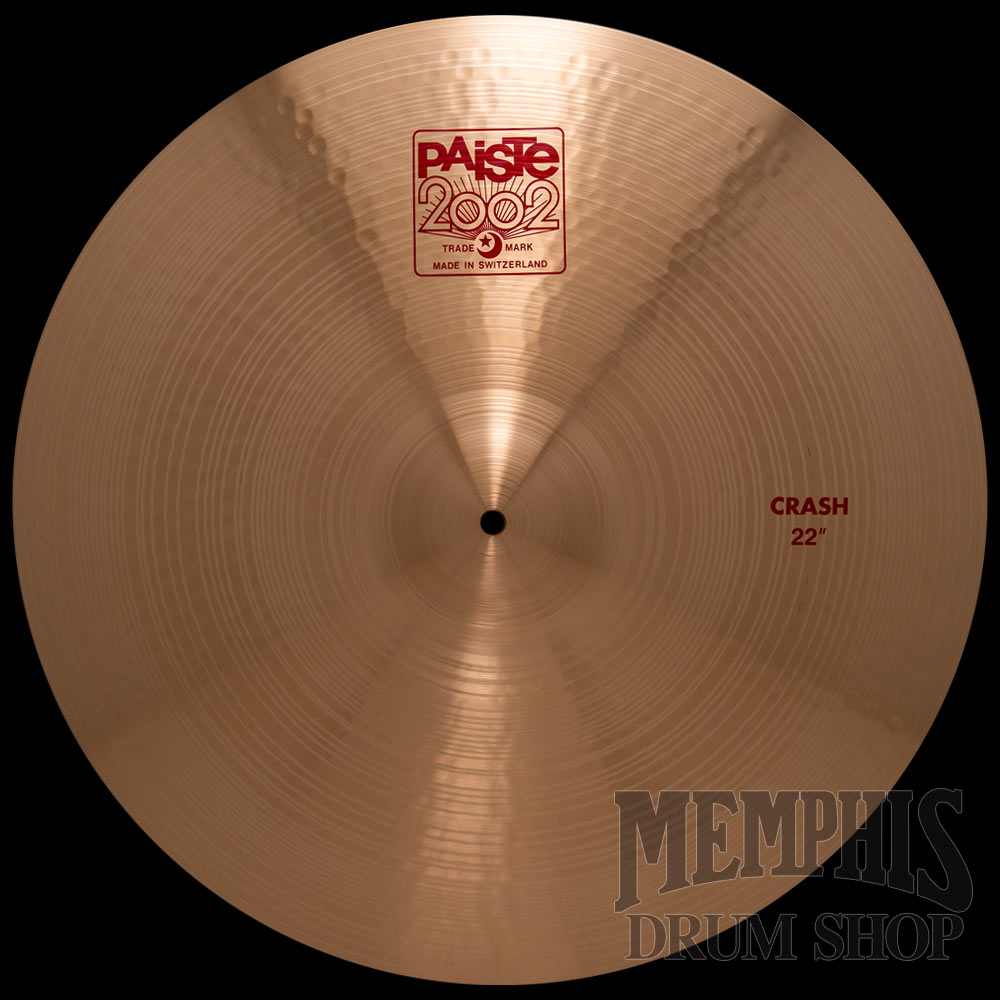 The 22" Paiste 2002 Crash Cymbal is bright, warm, full, and shimmering. Wide range, clean mix. Even, very responsive feel. Very versatile all-purpose crash. The definitive classic rock crash sound.