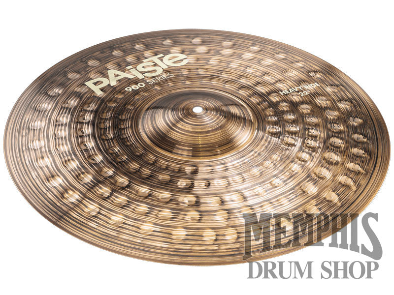 The 22" Paiste 900 Series Heavy Ride Cymbal is crafted from 2002 Bronze, with its legendary warmth, brilliance and strength. In sophisticated hybrid manufacturing the cymbals are refined by Swiss craftsmanship with hand hammering and lathing. A special finish slightly darkens the cymbals and amplifies the lathing grooves and hammer marks for a spectacular appearance that fuses roughness and elegance. Innovative design provides 900 Series cymbals with greater flexibility, resulting in a giving feel and outstanding playability. The overall sound is warm and full with subdued, discreet brightness. Heavier and larger models add abundant brilliance, cut and projection. The Paiste 900 Series sets the new standard for advanced sound at a reasonable investment.