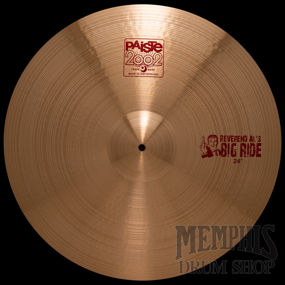 The 24" Paiste 2002 "Reverend Al's" Big Ride Cymbal is a part of Alex Van Halen's unmistakably unique sound. His setup always consisted primarily of 2002 cymbals so it's not a surprise that the new "Reverend Al's Big Ride", created in co-operation with Alex, is also part of the 2002 range. Soundwise this 24" cymbal is similar to the 24" Giant Beat, which has been Alex's favorite ride cymbal since it's re-release in 2005. The Paiste Sound Development team adopted the specifications of the 24" Giant Beat by mimicking the Giant Beat's shape, weight, bell size, and hammering patterns. This beautiful cymbal is finished using the unmistakable and characteristic 2002 lathing technique. It differs from the 24" Giant Beat primarily due to its remarkably silky ping and although being relatively light in weight, the Big Ride produces a rich, full bodied sound that covers a wide range of dynamics. This cymbal is also a fantastic crash cymbal.