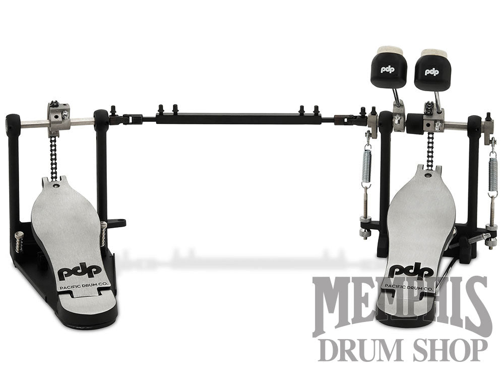 The PDP 700 Series Single Chain Double Bass Drum Pedal (PDDP712). Two decades of PDP design and innovation are packed into this lightweight, streamlined pedal. The retro-styled, single chain, concentric drive system is easy to play, while its dual-post primary pedal, steel baseplate, and telescoping linkage with universal joints are built to last. Features: 2-way beater, concentric cam, single-drive chain, beater angle adjustment, and solid base plate.