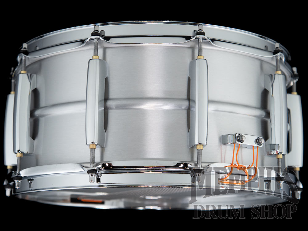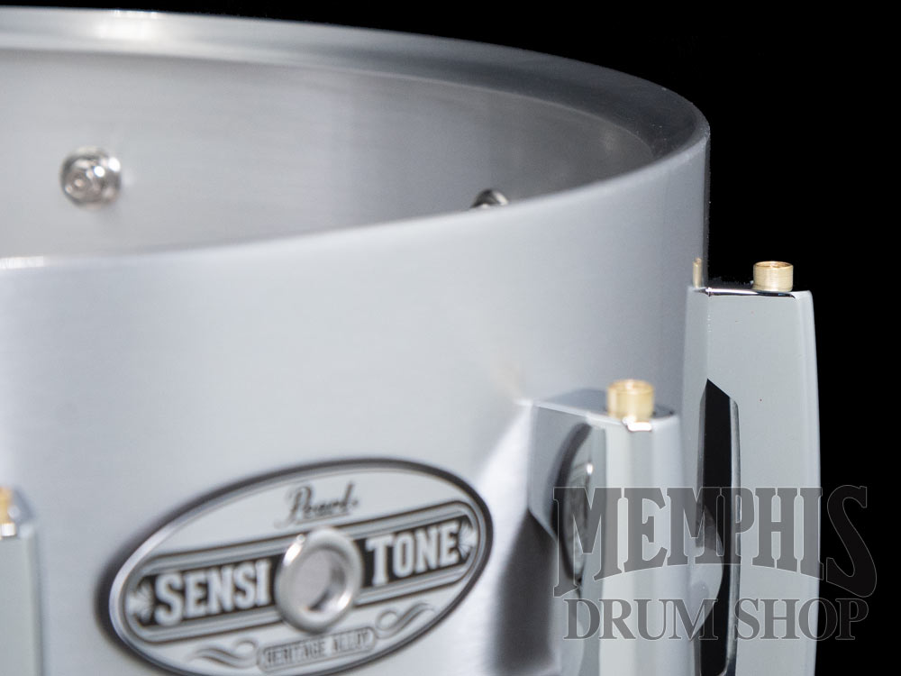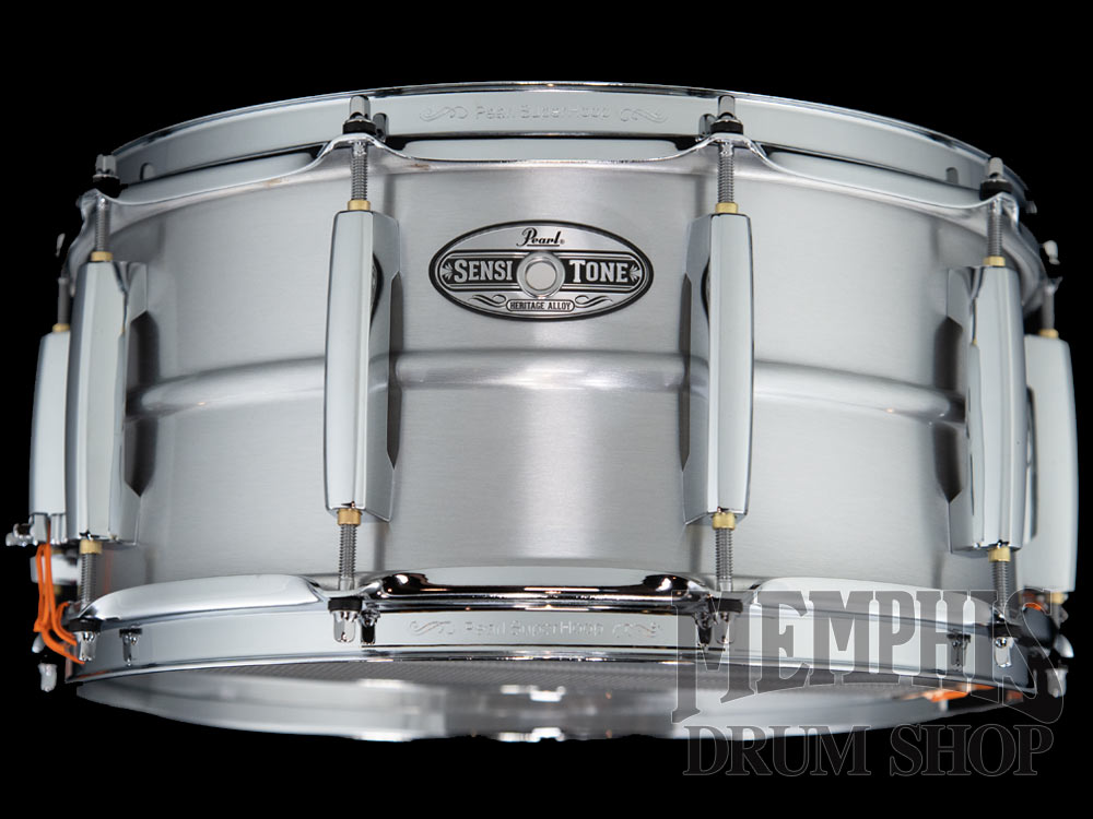 The 14x6.5 Pearl SensiTone Heritage Alloy Aluminum Snare Drum has a 1.2mm seamless beaded aluminum shell, and delivers the goods with the right gig-ready touches to make it a utility standard for the tonally nuanced player. This pearl snare drum features 2.3mm SurperHoop II hoops, 20 Strand Ultra-Sound snare wires, SR17A throw-off, 10 CL55 double-ended lugs, Remo coated Ambassador drumhead. This snare drum has an aluminum finish, Pearl SensiTone Heritage Alloy badge, and chrome hardware.