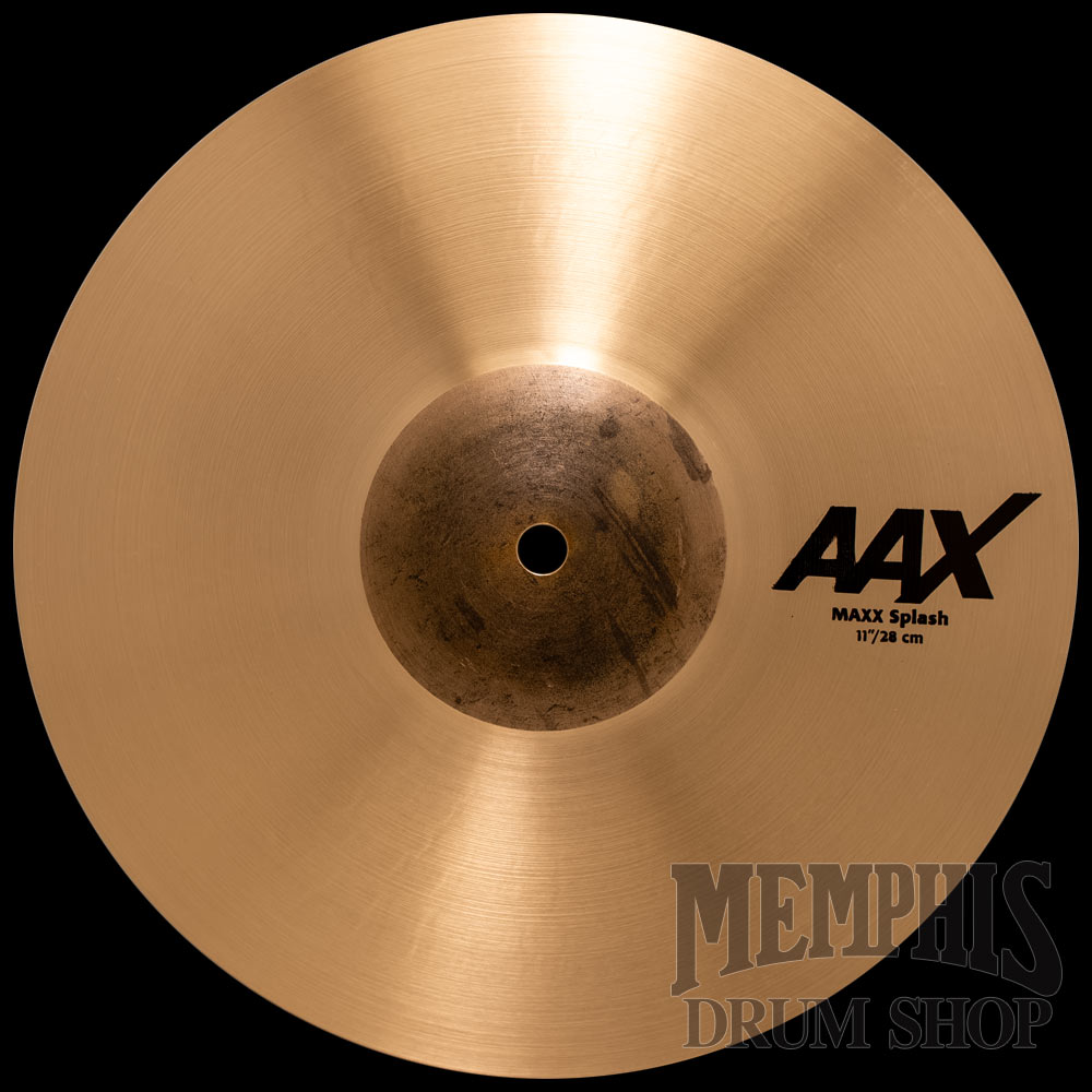 The 11" Sabian AAX MAXX V2 Splash Cymbal (21105XMPV2) features a larger raw bell and a new shape that makes them slightly stiffer than the originals, making for more volume and projection without a strong fundamental pitch.