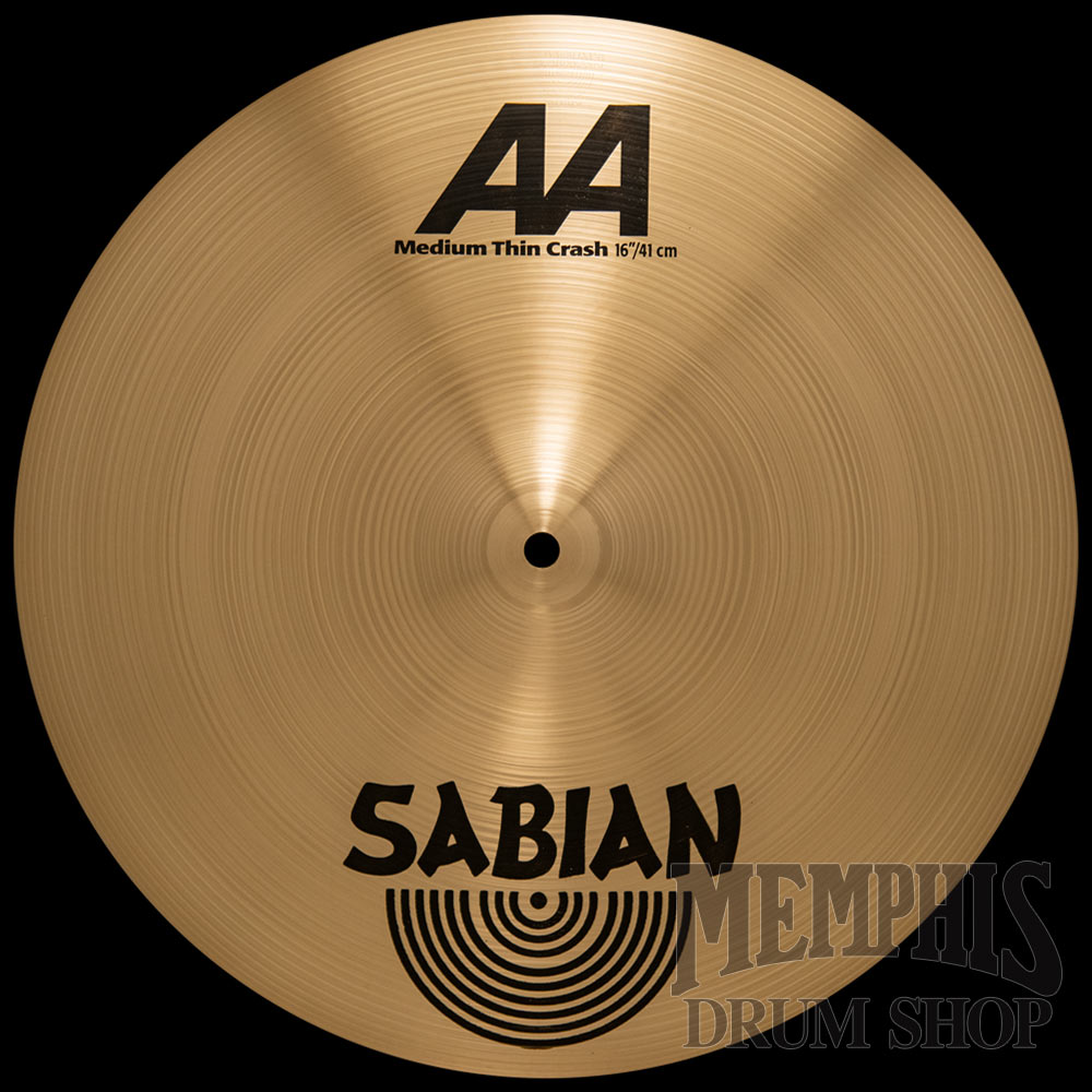 The 16" Sabian AA Medium-Thin Crash Cymbal is bright and tonally full, combining thin sensitivity with medium-weight power.