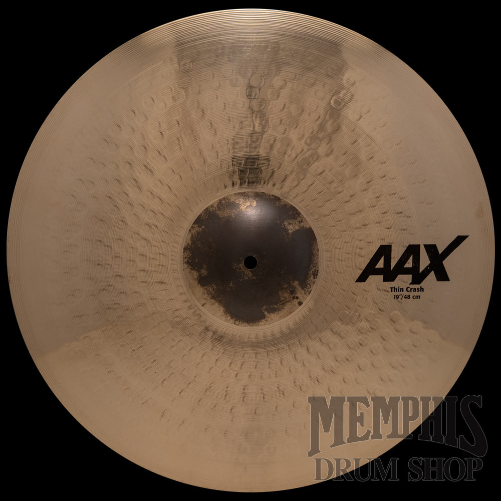 The 19” Sabian AAX Thin Crash Cymbal (21906XCB) introduces a whole new palette of sound to the AAX line. A small raw bell delivers faster response. A whole new style of AAX hammering, much more visible on the surface of the cymbal, makes for a thinner, more complex and slightly darker crash. At the same time, more highs are introduced into the sound, resulting in a wider band of frequency. For drummers, that means brighter highs and more complex lows.