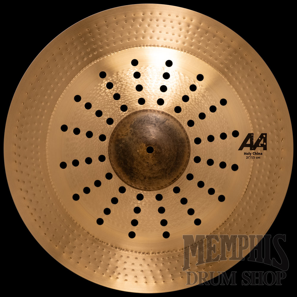 The 21" Sabian AA Holy China Cymbal was developed with Red Hot Chili Peppers drummer Chad Smith. Sabian innovation and forward-thinking cymbal design come together in this truly modern Chinese cymbal. With its 48 holes, large raw bell, high profile and wide lip, this is truly a monster of loudness and cut! Smaller holes create a smooth attack minus the lows and distortion of larger O-Zone holes. Crafted from pure Sabian B20 Cast Bronze.