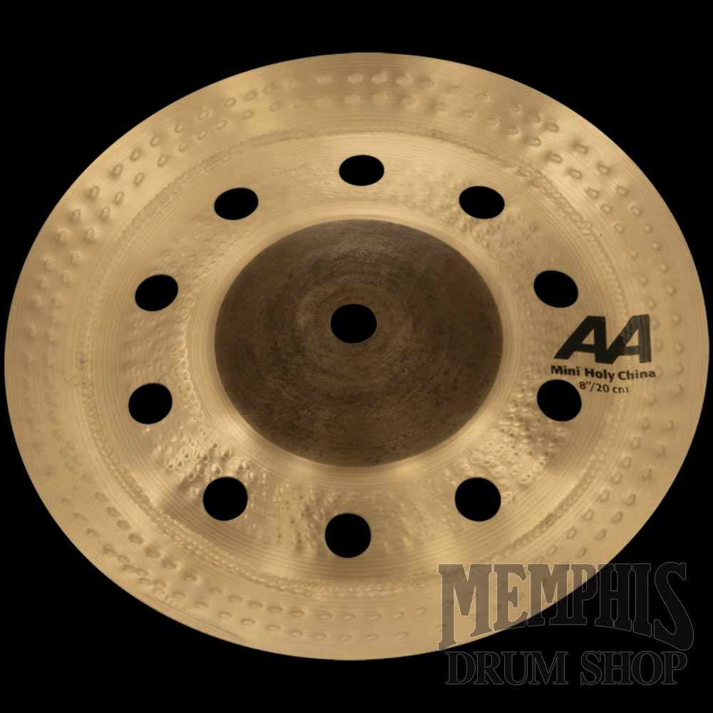 The 8" Sabian AA Mini Holy China Cymbal was designed with Chad Smith. All the volume, trash and cut of the Holy China is now available in a Mini Splash format. With its exaggerated high profile, single row of holes and raw bell, the 8" AA Mini Holy China cuts better than any other cymbal its size. This special design delivers the type of high-end white noise that is typically associated with larger cymbals. That's because more trash equals less tonal character and more white noise in the cymbal's sound, resulting in boosted cut. Think of it as a mini-monster of volume and cut. Sabian is committed to creating the widest, most innovative range of sounds on the planet, giving drummers more choice in creating their sound.Designed with Chad Smith, a mini-monster of loudness and cut. High profile, a raw bell and single row of mini-holes deliver serious cutting power. Designed for boosted trash and reduced tonal character.