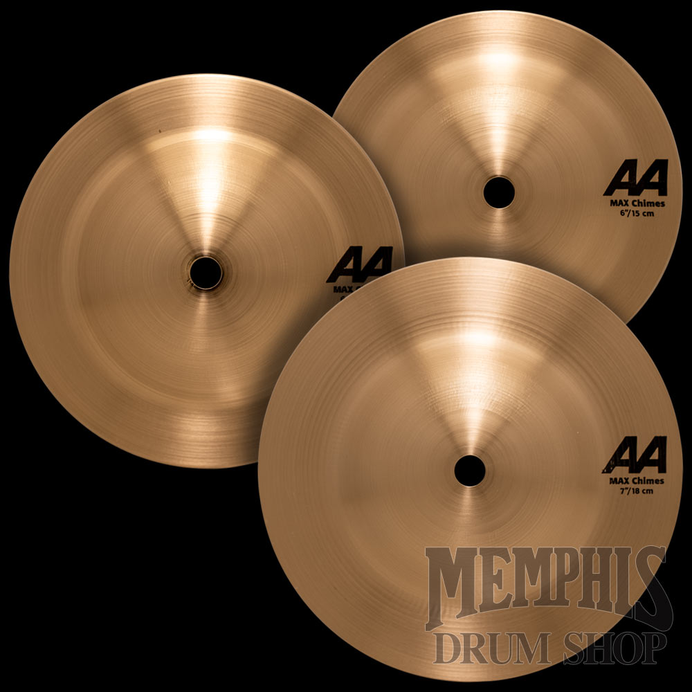The Sabian AA MAX Bell Chime Set (206303MP) is crisp, clear, and well defined. Thinner than a cup chime or ice bell, but much thicker than a splash, these small chimes sound great on their own or mount them upside down on top of other cymbals like Mike Portnoy! This set features the 6" (20663MP), 6.5" (206563MP), and 7" (20763MP) AA MAX Bell Chimes.