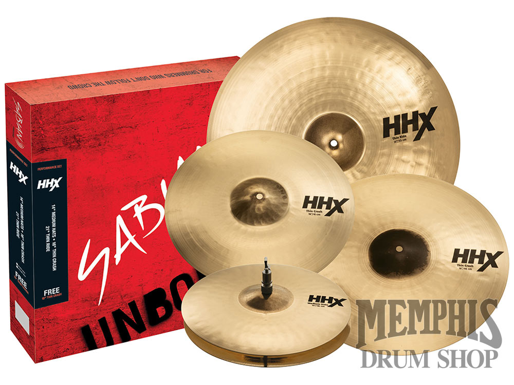 The Sabian HHX Performance Set has a round of sparse hammering, followed by lathing, then denser HHX hammering over top, the result is a line of cymbals that are thinner, darker and faster than the HHX Studio, Stage and Power models they replace. A smaller bell on the Thin Crashes and Ride ensures a faster attack and cymbals that trend lighter in weight. The versatility to easily cross musical styles has always been a hallmark of the HHX line, and the HHX Performance Set, with 14” Medium Hats, 16” and 18” Thin Crashes and a 21” Thin Ride, is no exception.