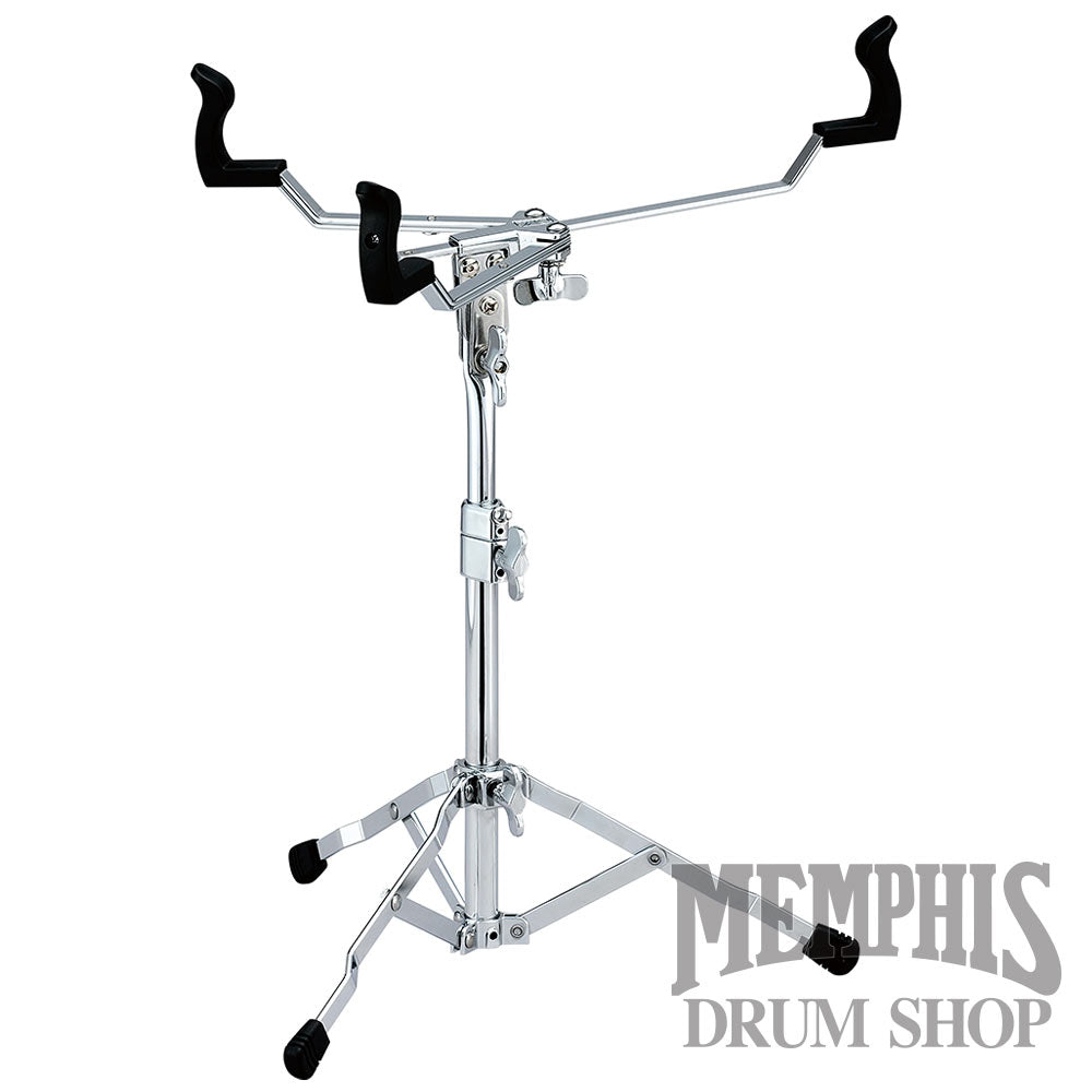 The Tama Classic Snare Stand (HS50S) was designed with regular tripod legs, not flat base legs because a snare stand needs flexibility of footprint to avoid interference from a drum pedal or hi-hat stand. By simply loosening the T-nut, the length of one of the basket's arms can be adjusted to securely hold a 12" to 14" diameter snare drum (including S.L.P. Studio Maple snare drum). In additton, the other two arms can be folded for easy and compact transport. The two double braced basket arms eliminate any wobbling without overly restricting the drum's resonance or sustain. The Gearless Tilter securely holds its position using metal to metal contact, as opposed to traditional gears, allowing adjustments to any desired angle.