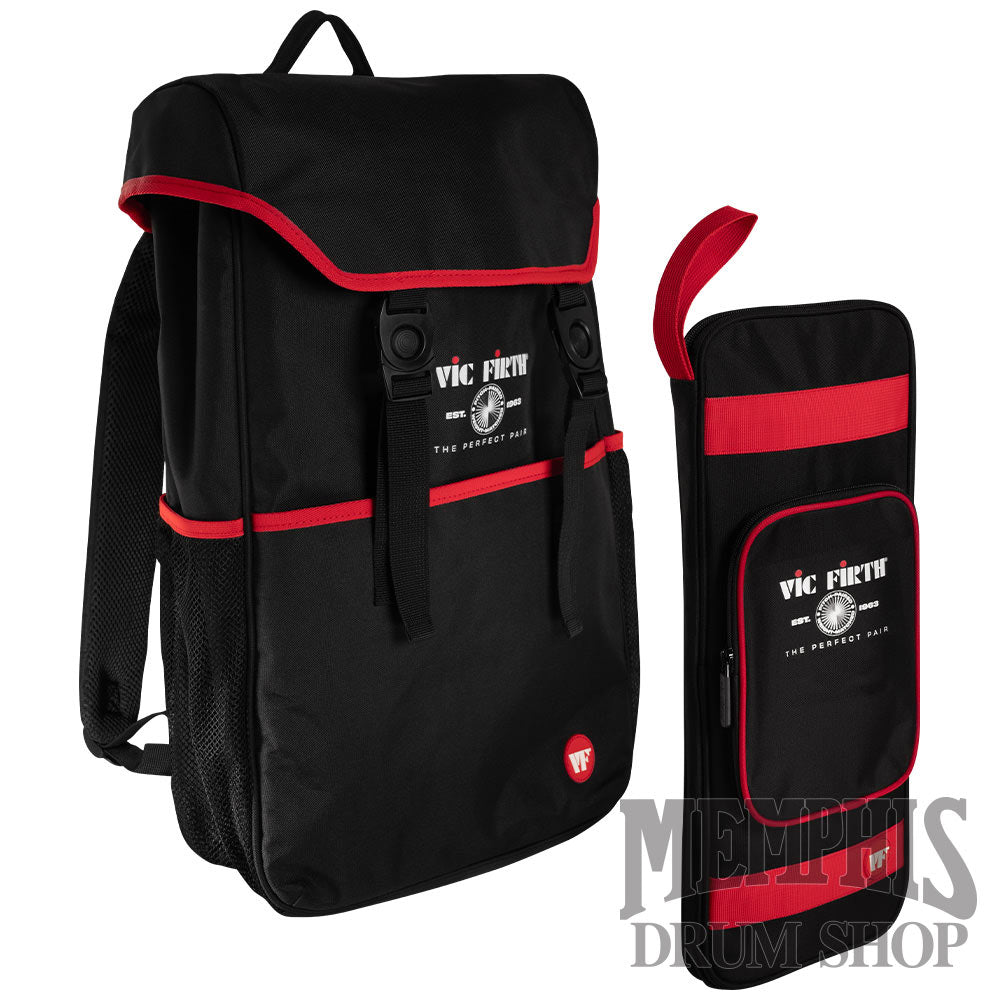 The Vic Firth Protege Stick Bag Backpack (VXBP0053): Designed specifically for drummers, this bag offers convenience, functionality and comfort. This Backpack is perfect for drummers of all levels, whether a student heading to a lesson or a touring musician on the road. Multiple compartments and pockets provide storage space for a laptop, sheet music, books and drumming essentials. The included integrated and removable stick bag securely nests into the front of the backpack for convenient carrying, and includes adjustable floor tom straps, and hold up to 8 pairs of drumsticks. The Vic Firth Protege Stick Bag Backpack is comfortable to wear with padded shoulder straps and a ventilated, padded back panel, and is crafted from high-quality nylon designed to withstand the wear and tear of frequent usage.
