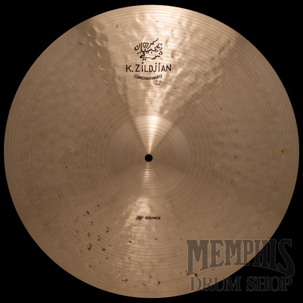 The 20" Zildjian K Constantinople Bounce Ride (K1060) was designed in conjunction with Jazz legend Kenny Washington. This newest edition to the K Constantinople line is medium thin in weight, which produces a pitch that can ride over the band and cuts through most small to big band settings. The "Bounce" ride has traditional K Constantinople hammering but with more pronounced lathe/tonal grooves, and produces plenty of sustain and wash. This cymbal has a unique series of eight "cluster" over-hammered marks on top that are visually distinct.