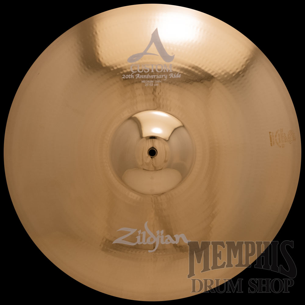 The 21" Zildjian A Custom 20th Anniversary Ride Cymbal (A20822) was created to celebrate Zildjian's 20th Anniversary of their A Custom cymbal line. This cymbal is extremely versatile, making it well suited for all types of musical settings. Retaining all of the A Custom cymbal line attributes, the 21” 20th Anniversary Ride features symmetrical hammering, brilliant finish, and medium weight for a balanced sound that is neither too high nor too low. Known for its crisp, sweet sound, this cymbal’s loud, penetrating bell is also ideal for Latin patterns. To commemorate the 20th Anniversary of the A Custom line, a cream-white logo and special trademark have been added to the cymbal.
