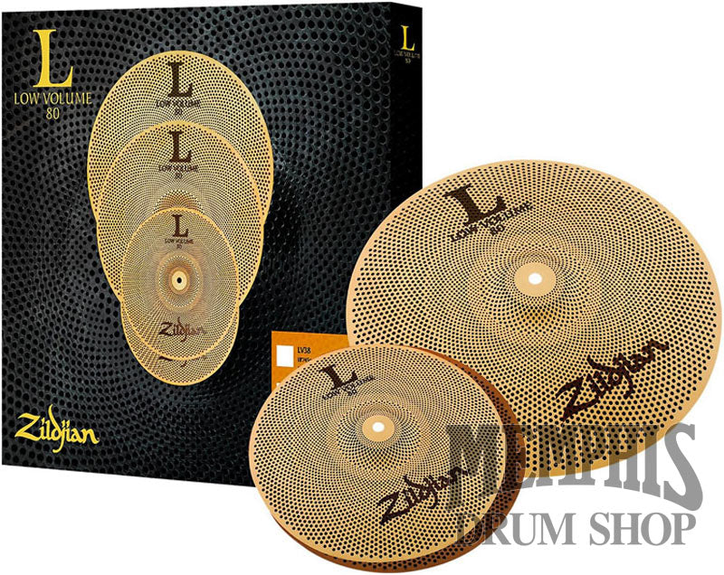 The Zildjian L80 Series Low Volume Cymbal Box Set is made up of Zildjian's one-of-a-kind L80 Low Volume cymbals, which are up to 80% quieter than traditional cymbals without losing the authentic Zildjian feel. They are ideal for practice spaces, drum lessons, low volume gigs, apartments or anywhere you can't play loud. Not only are these designed to seamlessly integrate into an existing L80 cymbal set, they can be used as stackers or even HiHat components to create new and cool effects.