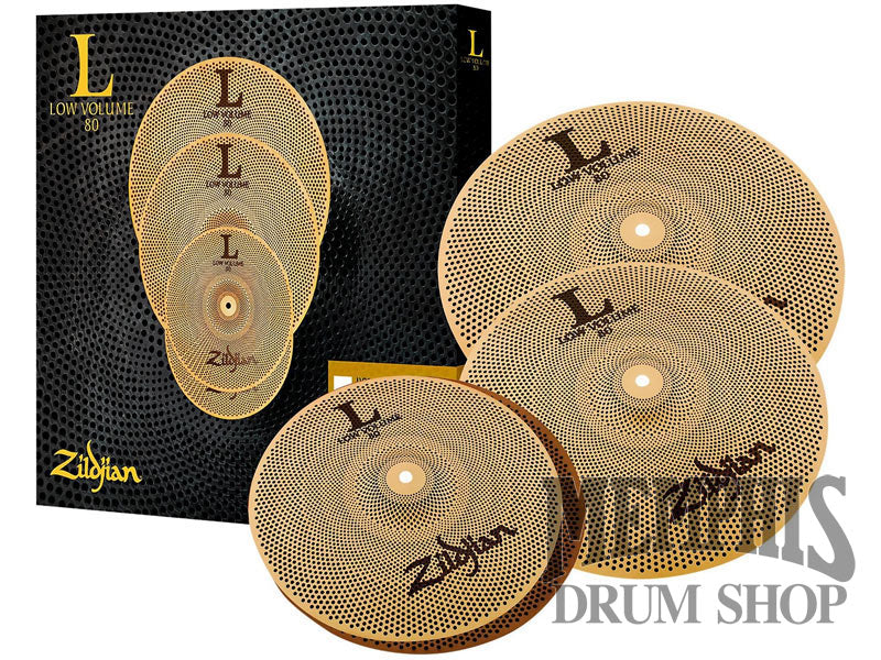 The Zildjian L80 Series Low Volume Cymbal Box Set is made up of Zildjian's one-of-a-kind L80 Low Volume cymbals, which are up to 80% quieter than traditional cymbals without losing the authentic Zildjian feel. They are ideal for practice spaces, drum lessons, low volume gigs, apartments or anywhere you can't play loud. Not only are these designed to seamlessly integrate into an existing L80 cymbal set, they can be used as stackers or even HiHat components to create new and cool effects.